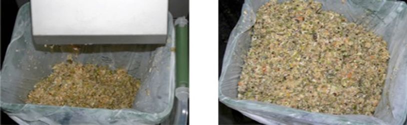 Waste pulpers systems include a macerator ( grinder ) and a dewatering unit, ideally to use in conjunction with any of our food waste onsite solutions to decrease the volume of food waste, where suitable and practical. Where food waste is an issue and you have the ability to use any of our sustainable solutions, we will sometimes recommend the use of this "pre treatment" to help complement our own process. Below are examples of food waste, installations and the end product when a waste pulper system is used. This food waste "pre treatment" system is used, where practical, for several reasons: